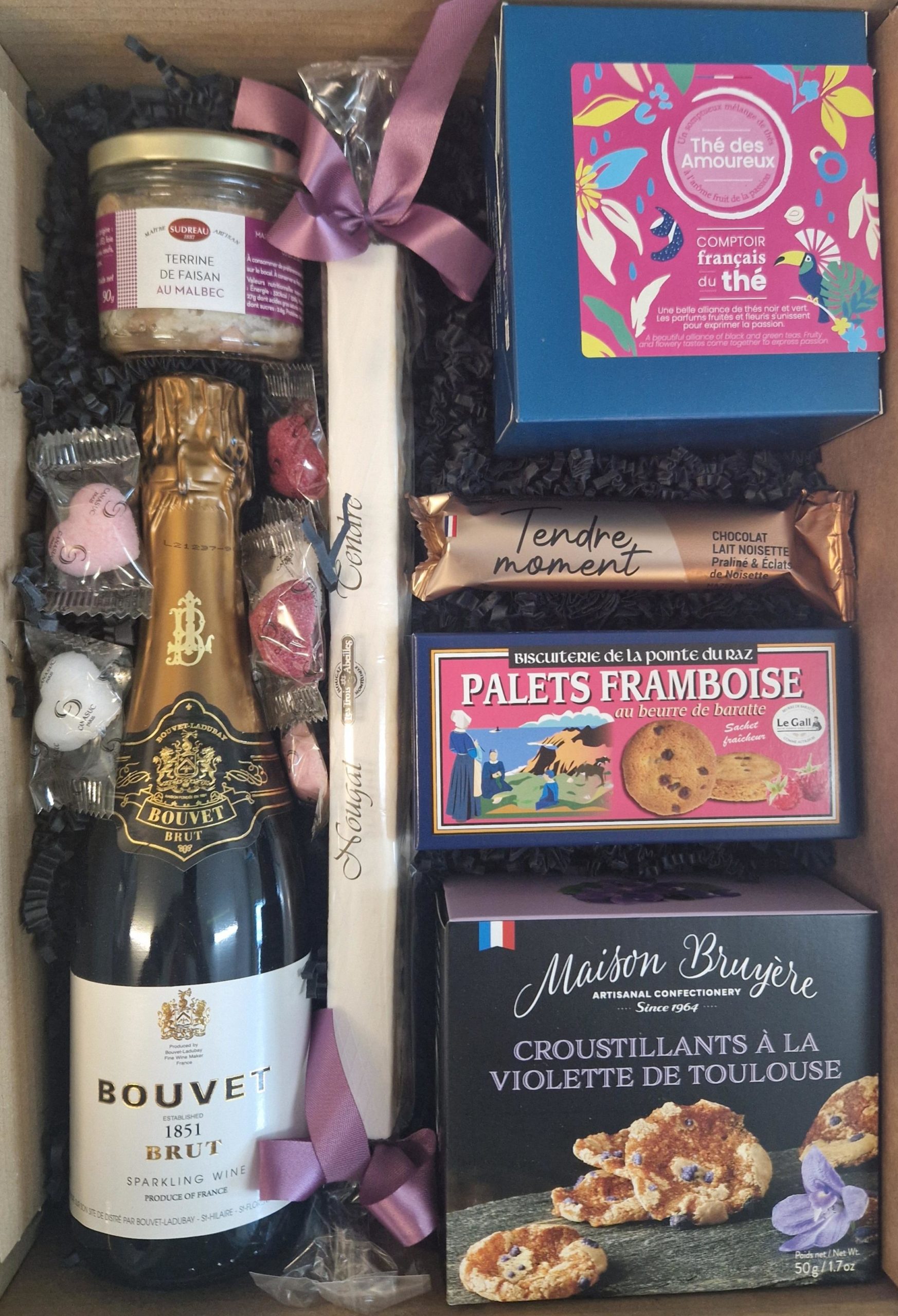 49,95 €Delikatessen-Geschenk mit ausgewählten Köstlichkeiten für Verliebte aber auch für die beste Freundin, die liebe Mama oder Oma.Eine wunderbare Kombination mit französischen Spezialitäten für einen gelungenen Abend zu Zweit mit einer Pastete, einem wunderbaren Sekt und viele süßen gemeinsamen Momenten. Ein Geschenk um „Danke von ganzem Herzen“ zu sagen. -