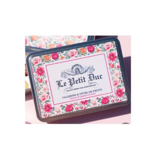 In dieser wunderschönen Metalldose befindet sich ein Schachbrett aus Calissons & Fruchgelees aus der Provence.