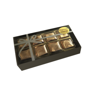 8 Marrons glacés (glasierte Maronen) einzeln verpackt 140g Zutaten: Maronen (Italien), Zucker, Glukosesirup, Vanillenschoten. Nettogewicht: 140g Nach dem Öffnen, kühl lagern und innerhalb von 3 Wochen verzehren.