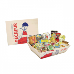 Makrelen-Emietté „Escartefigue“ : Zutaten: Makrelenfilets (50%), natives Olivenöl Extra, Tomaten (9,5%), Zwiebeln, Weißwein (Sulfite), Branntweinessig, Maniokstärke Tomaten-Aroma, Aromapflanzen (2,1%) davon Knoblauch (0,8%), Salz, Zucker, Gewürze) – Nettogewicht:160g.