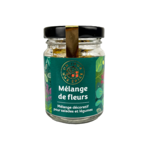 Diese Blumenmischung besteht aus Ringelblumenblüten, blauen Kornblumen und Rosenblättern. Mit dieser Blumenmischung können Sie alle Ihre Rezepte dekorieren, ob herzhaft oder süß: gemischte Salate, Käseplatten oder Obstkuchen.