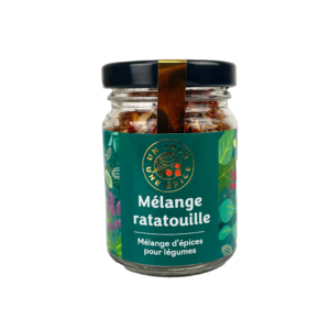 Diese Mischung aus rotem Pfeffer, Knoblauch, Paprika, Kräutern der Provence (Rosmarin, Thymian, Oregano, Basilikum), weißen Zwiebeln, schwarzem Pfeffer, Kreuzkümmel und Lorbeerblatt ist eine farbenfrohe fertige und perfekte Mischung von Aromen für die perfekte Ratatouille und alle Gemüsegerichte zu verfeinern .