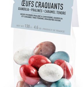 Mit dem einzigartigen Know-How der Manufaktur Cluizel hergestellten knusprigen Schokoeiern aus hochwertiger Milchschokolade gefüllt mitmit Praliné, Gianduja, weichem Karamell und Dragees