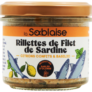 Zutaten: Sardinen (62%), Creme fraîche, Wasser, kandierte Zitronen (Zitrone, Zucker, Glukosesirup) (3%), Basilikum (1,5%), Salz, Pfeffer, Milcheiweiß, Glukosesirup, Laktose, Verdickungsmittel: Guargummi.