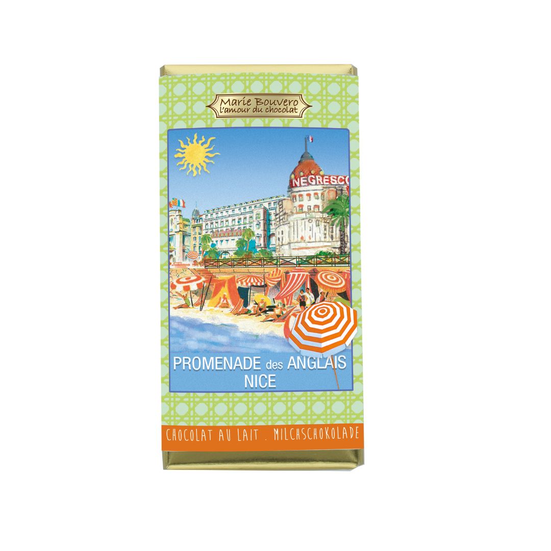 Sehr hochwertige und nostalgische Schokoladetafel aus Milchschokolade mit dem Motiv der Nizza-Promenade. Jede Tafel wird händisch mit Glitzer verziert. Die Rückseite lässt Platz für eine persönliche Widmung. Ein perfektes Geschenk für Paris-Liebhaber oder als kleine Aufmerksamkeit für seine Liebsten!