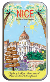 Schokodragees aus dem Hause Marie Bouvero verpackt in einer wunderschönen Metalldose mit dem Motiv „Nizza“.