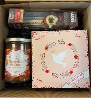 20,50 €Ein kleiner aber feiner, weihnachtlicher Geschenkkorb, gefüllt mit 3 exquisiten, süßen Delikatessen:– Weihnachtsmarmelade: Marmelade mit den wunderbaren Clementinen aus Korsika und verfeinert mit Äpfeln und Gewürzkuchen– perfekt für Ihr Frühstücksbrot während den Weihnachtsfeiertagen.– Petits Sablés tout chocolat de Noel: Direkt aus der Stadt Sablé in Frankreich hergestellt, natürlich ohne Farbstoffe oder Konservierungsstoffe und aus den besten Zutaten. Für die Feiertage liebevoll verpackt in diesem wunderschönen Geschenkkarton mit festlichen Motiven– Trinkschokolade am Stiel: Lassen Sie sich von der leckeren heißen Schokolade und dem starken Weihnachtsmann verzaubern! Übrigens löst er sich auch wunderbar in Ihrer heißen Milch auf!Ein wunderbares Geschenk für ein friedliches Weihnachtsfest oder als besondere Aufmerksamkeit zu Nikolaus!